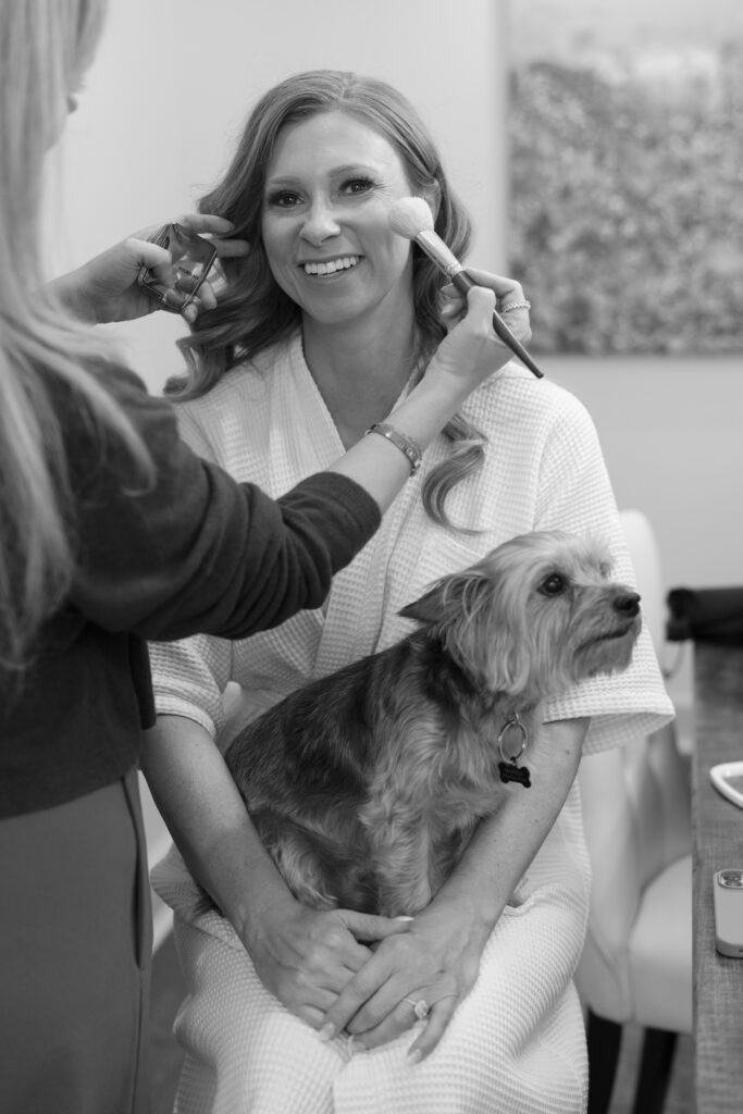 Our beauty team had a welcome challenge of 22 ladies in-house for our getting ready experience. Luckily, the bride had a beautiful downtown rental property to house them for this. Makeup from Raye Beauty Co. and hair companies – Beauty and the Braid for our bride and bridal party, then Hair by Laken for the nieces and family.