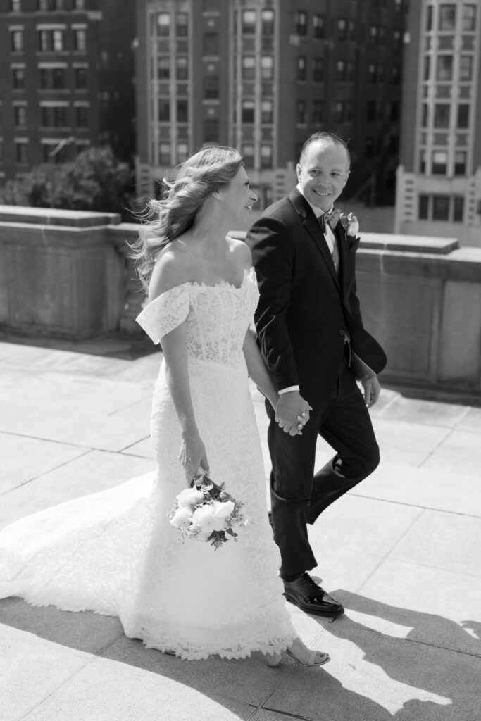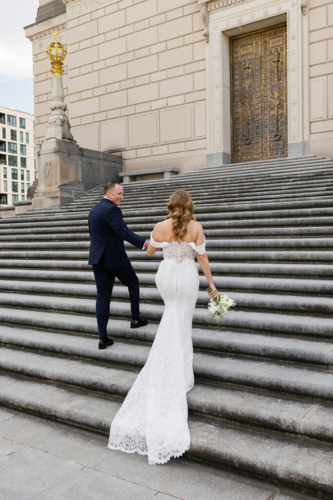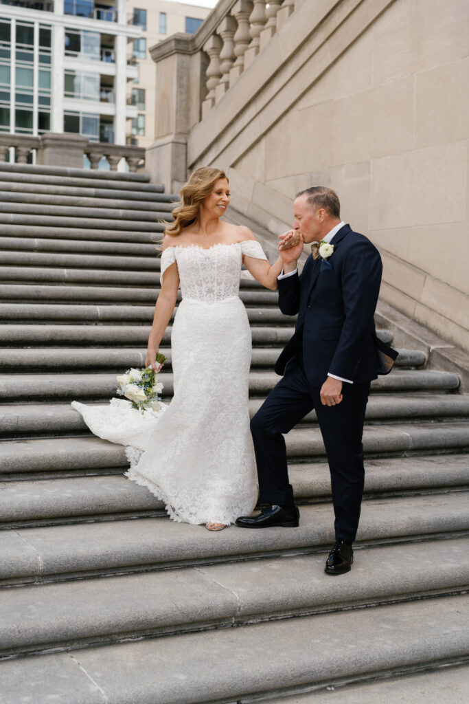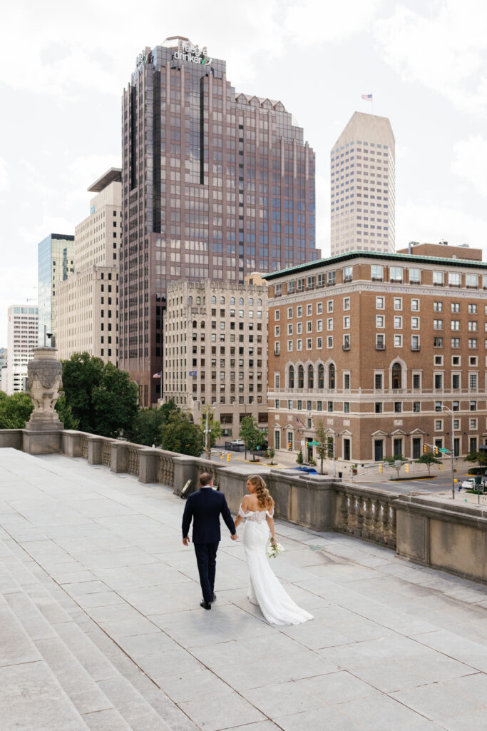 The couple met at The War Memorial in Indianapolis to share a first-look and take couple portraits.