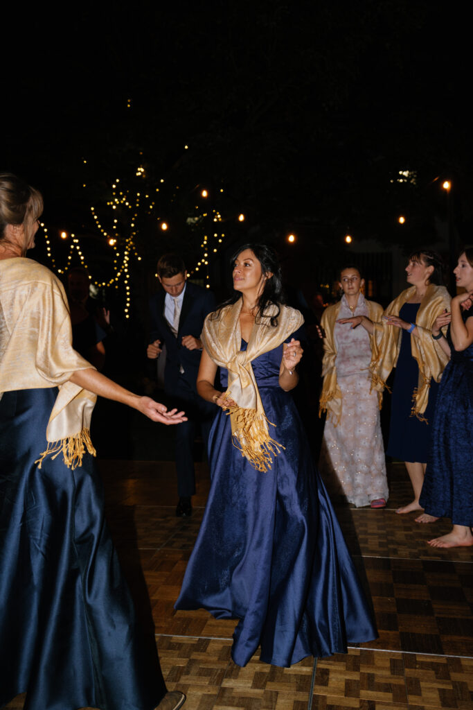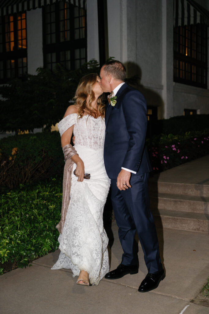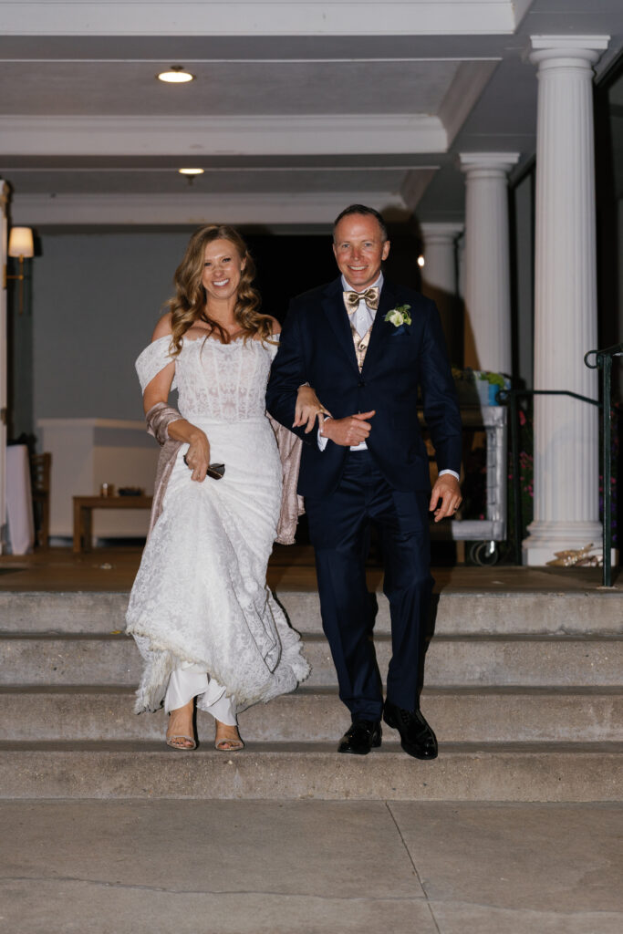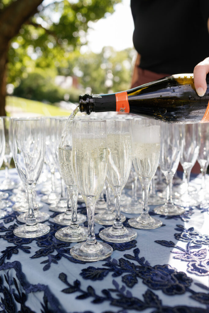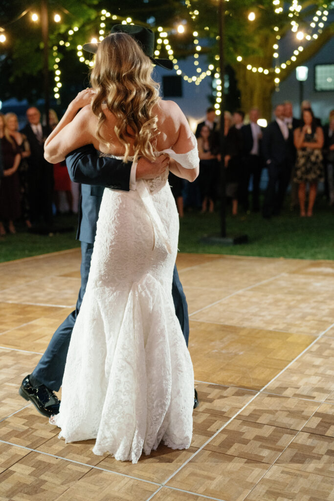 As the sun went down, we created a magical experience outside for everyone to return to. This included a tree filled with twinkle lights, a s’more fire pit, a cornhole tournament (complete with trophies!), a lit dance floor and DJ, a Bourbon Bar and Cigar Lounge, a large dessert table, and the pièce de résistance – an epic professional fireworks show set to some of the couple’s favorite music.