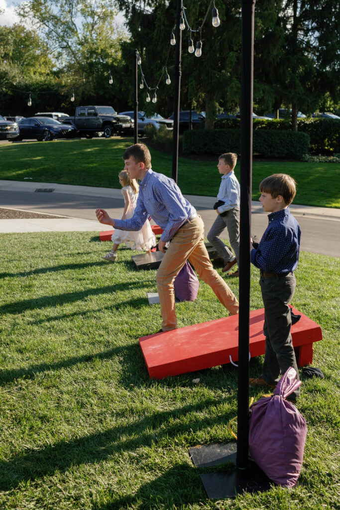 The couple loved to compete, and we had custom cornhole boards made with their logo in the center, and the guests all signed them as the guest book.
